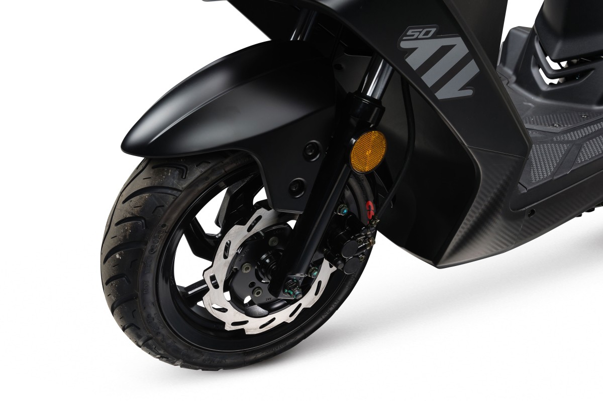 De knipperlichten vooraan werden in het stuur geplaatst voor een betere zichtbaarheid. Kenmerkend zijn de krachtige 50cc 4-takt motor en de grote schijfrem in het voorwiel en met het hoog geplaatste zadel en een breed steunvlak voor de voeten heb je een unieke en comfortabele rijpositie. Opbergruimte vind je onder de buddyseat.